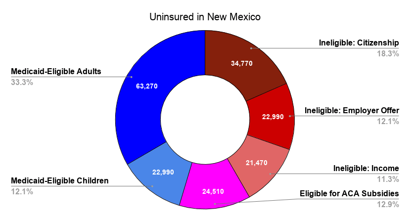 190,000 New Mexicans, 9% of the state population, have no form of health insurance.